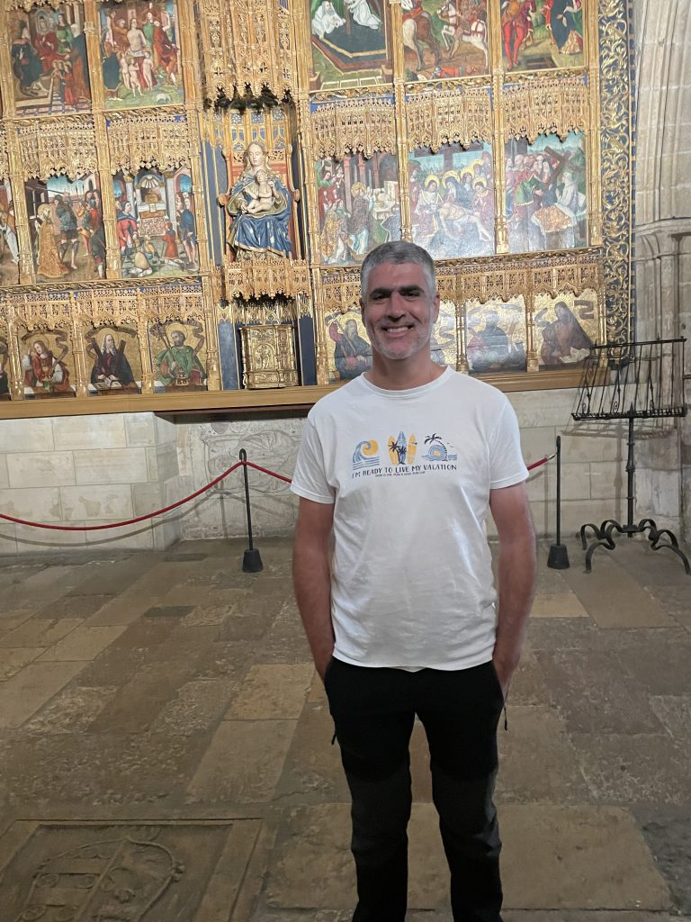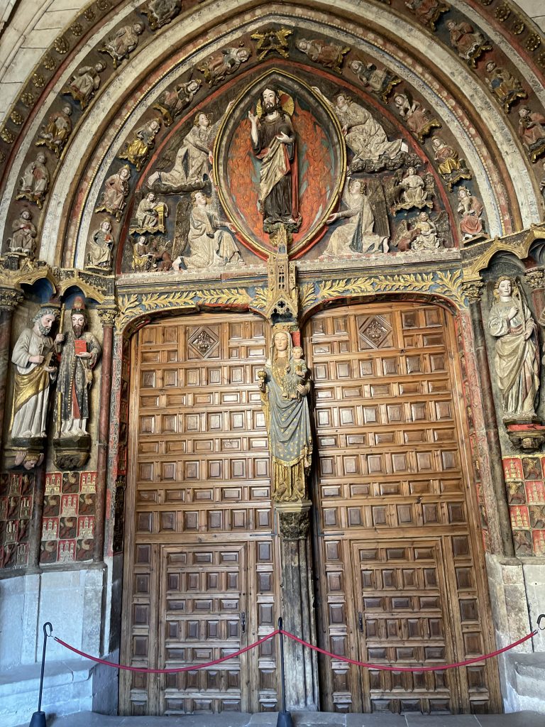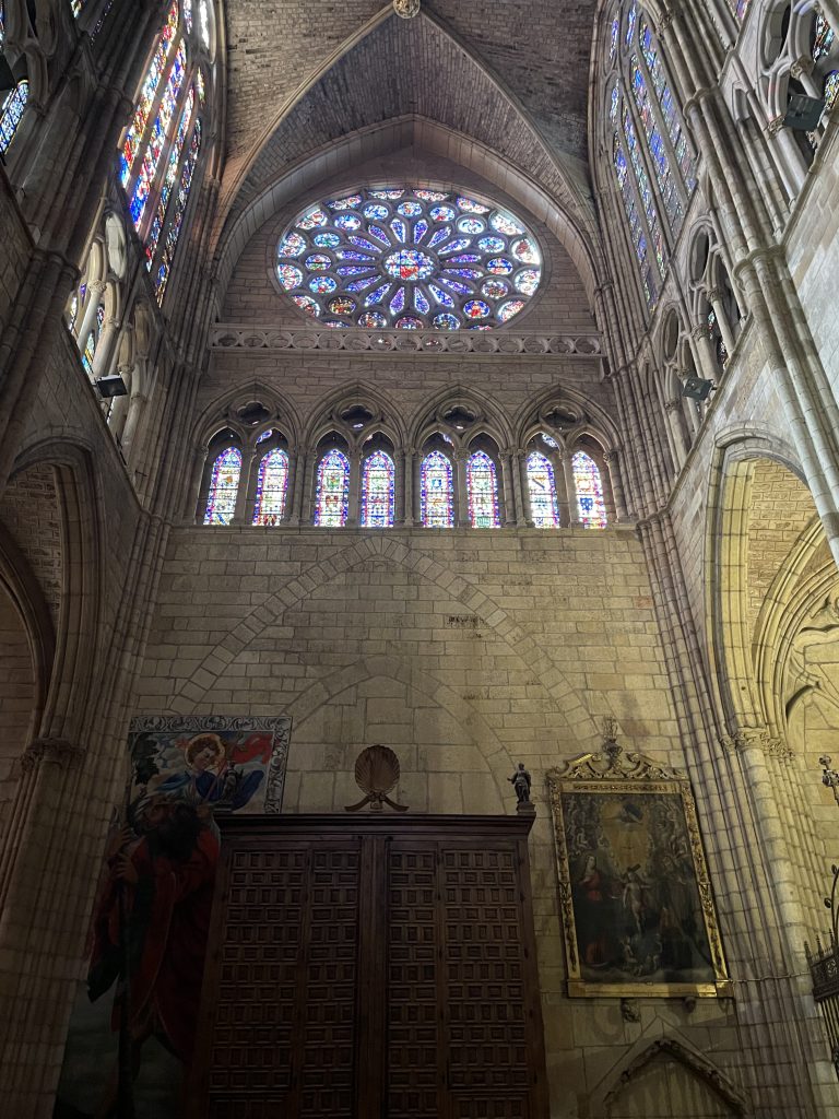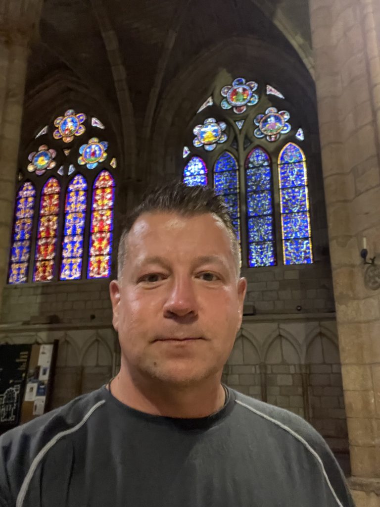 Davon werde ich ihm morgen erzählen. Hab das besser nicht ins Verhältnis zum Anfangsgewicht gesetzt. Zum Glück beherrscht der Drecksack keine Prozentrechnung. Danach sah ich mir noch die beeindruckende Kathedrale von innen an, die auch ein Museum zu bieten hatte. Natürlich wieder für 10 EUR Eintritt. Die bunten Glasfenster, die sich über einer Fläche von insgesamt 1.800 Quadratmeter erstrecken, waren wirklich spektakulär. Und, wie sollte es anders sein, traf ich Tana und Raul, die sich unabhängig voneinander genau den gleichen Zeitpunkt zur Kathedralenbesichtigung ausgesucht haben. Es gibt hier so viele Zufälle, das ist schon unheimlich. Wir gingen wieder zusammen essen in einer echt leckeren Tapas Bar. Diesmal ohne das kulturelle Nachtangebot zu nutzen, zumindest nicht so intensiv. Morgen sind es 25 KM und wieder 30 Grad angesagt.