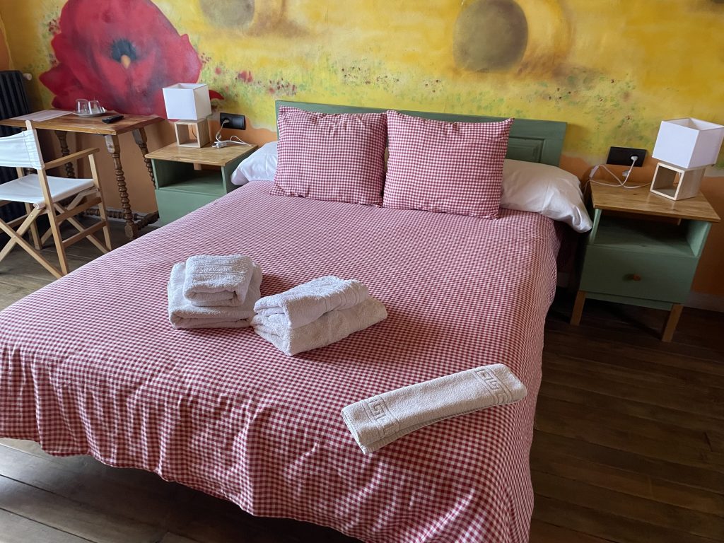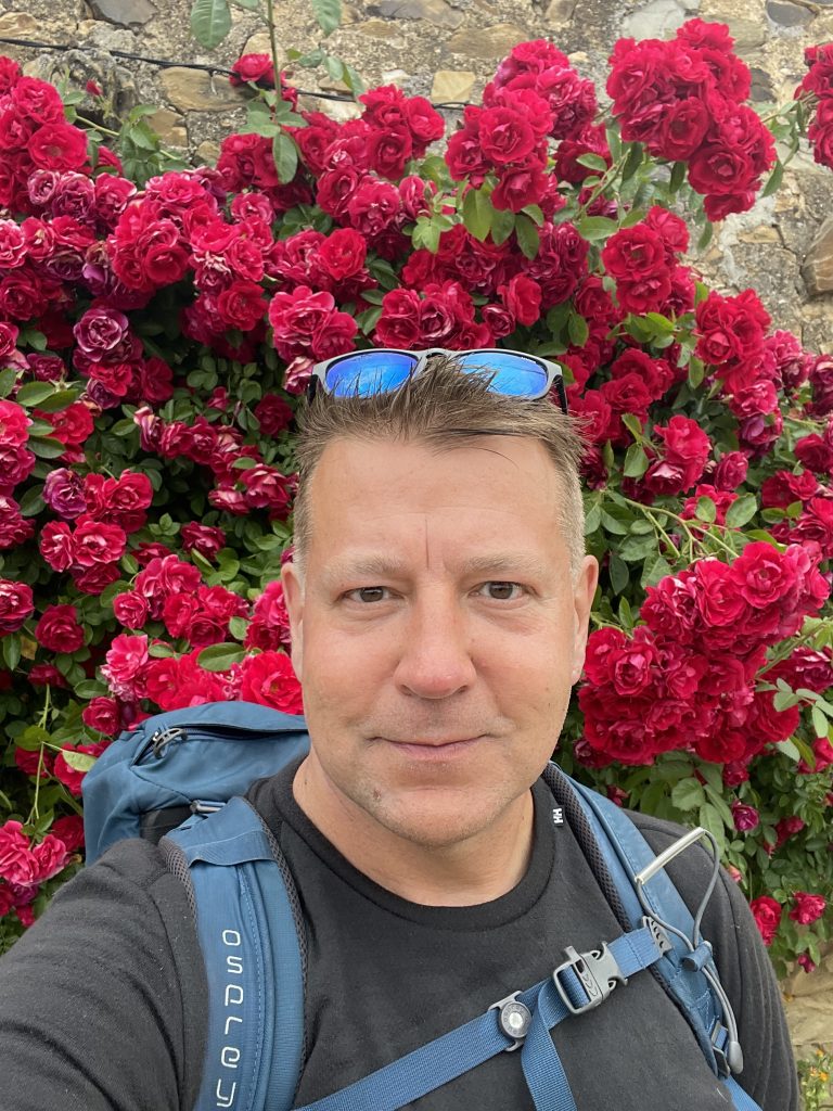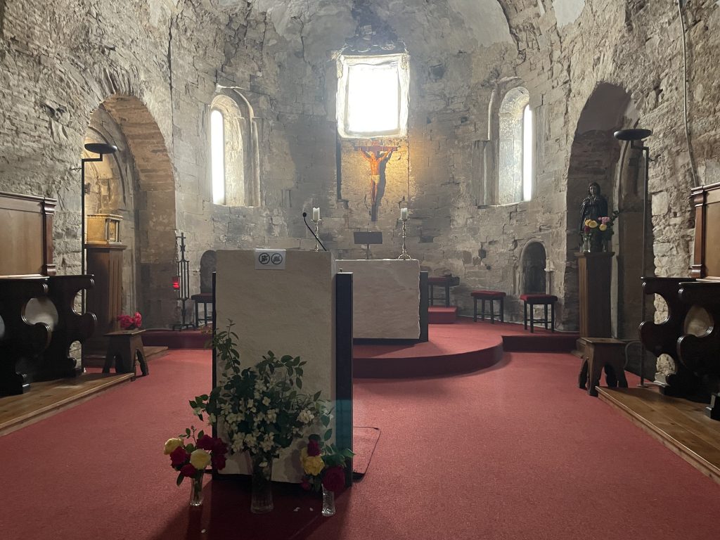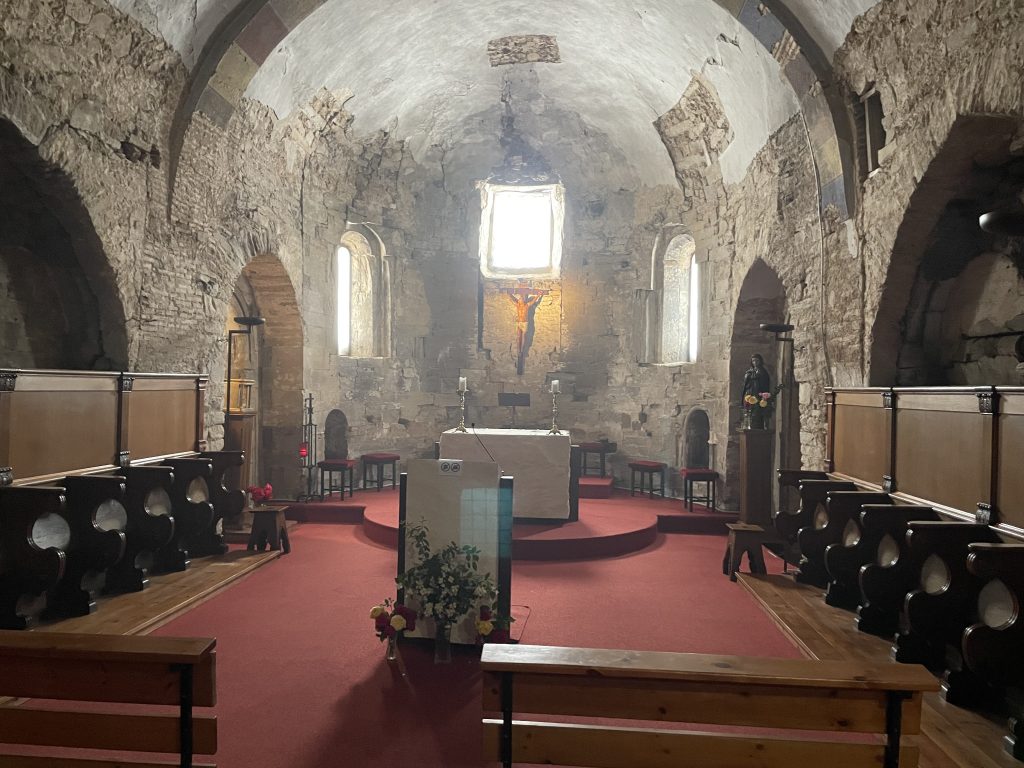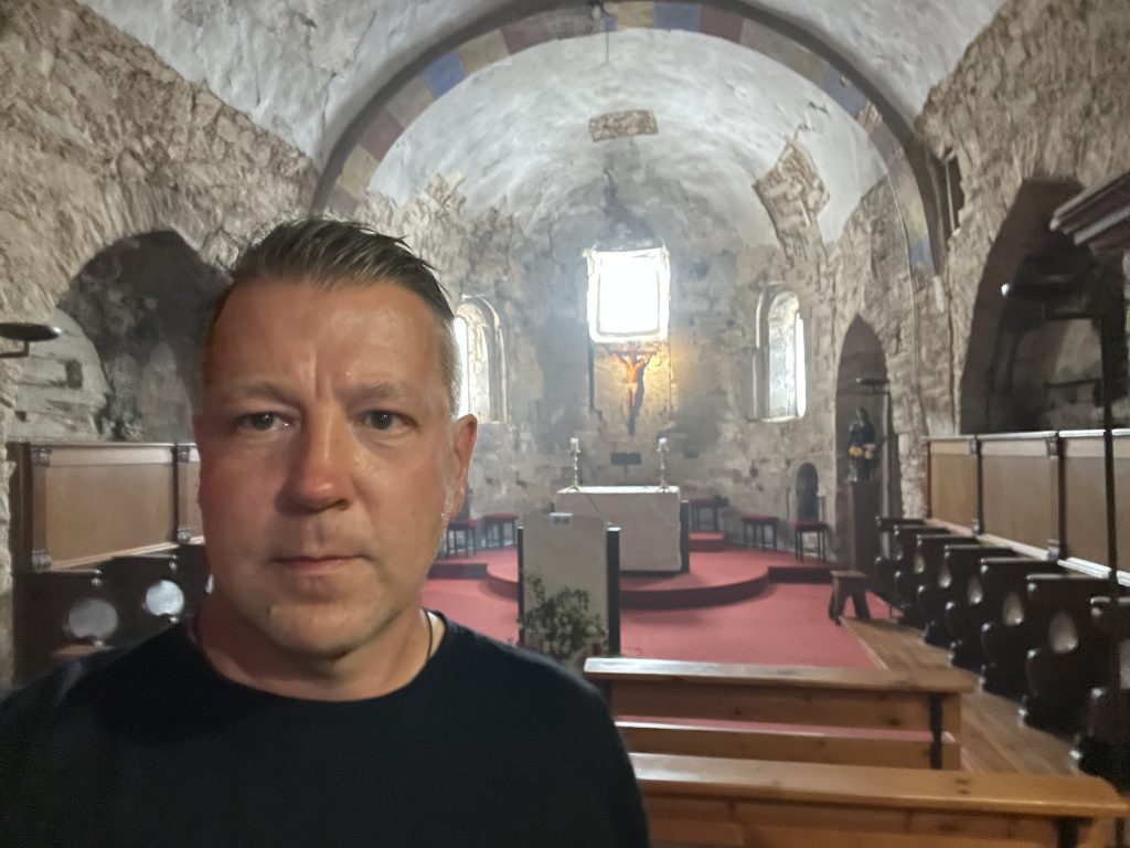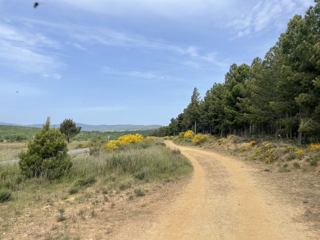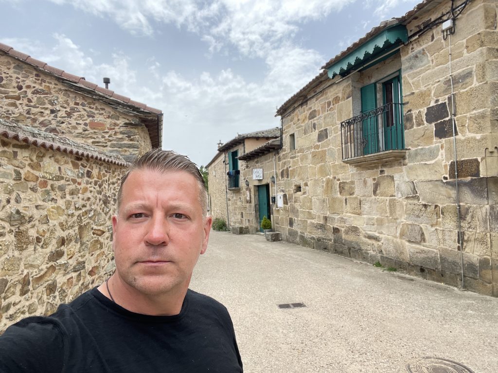 Astorga hat mir aus irgendeinem Grund nicht so gut gefallen, kann gar nicht den Grund benennen. Bin nach einem doch noch geselligen Abend früh ins Bett mit nur Frauen im Schlafraum, außer mir halt. Die sind dann alle schon um 05.00 Uhr aufgestanden und haben sich auch redlich bemüht leise zu sein, das muss ich ihnen lassen. Bei einem alten Boden aus Holzdielen aber ein Ding der Unmöglichkeit. Also bin ich auch früh raus und um 06.30 Uhr on the way. Nach 4 KM in die erste Bar am Wegesrand, dort traf ich Patricio wieder und lernte Savanna aus Frankreich kennen. Sie kommt aus Ardeche. Sie konnte kein Englisch und ich kein französisch. Egal, haben uns trotzdem gut verstanden. Die Bar offerierte einen unglaublich gutes Tortilla mit Frischkäse und Bacon drauf. Tortilla meets Flammkuchen. Lecker. Ich bin dann heute schon um 12.30 Uhr angekommen und habe ein kleines, echt schnuckeliges Zimmer in einem alten steinernen Wohnhaus mit herrlichem Innenhof. Im Bad hängt ein selbst geknüpfter Vorhang mit der deutschen Aufschrift:“ Freut euch des Lebens“. Und das hier in einem kleinen, spanischen Bergdorf auf 1000m Höhe. Einzigartig. Ich fühle mich sofort pudelwohl hier und spiele mit dem Gedanken eine Tag zu verlängern. Der Oberschenkel und mittlerweile auch die Wade wären sicherlich dankbar. Beim Rundgang durch das Dörfchen, bin ich in die kleine Kirche rein. Sie war nicht spektakulär, strahlte jedoch wesentlich mehr Ruhe, Erhabenheit und Spiritualität aus als die auf Prunk ausgerichteten Kathedralen in Burgos oder Leon. Ich war allein dort, im Hintergrund wurde gregorianischer Gesang angespielt. Ich habe mich in einer der Bänke gesetzt und diese unvergleichliche Atmosphäre aus Stille und Spiritualität länger auf mich einwirken lassen. Es nimmt einen schon mit. Um 19.00 Uhr besuchte ich die Messe, die in Latein und mit gregorianischen Gesängen zusammen mit den Pilgern abgehalten wurde. Ich kannte das in der Form noch nicht. Es war meditativ, schön. Auch, wenn ich kein Wort verstanden habe.