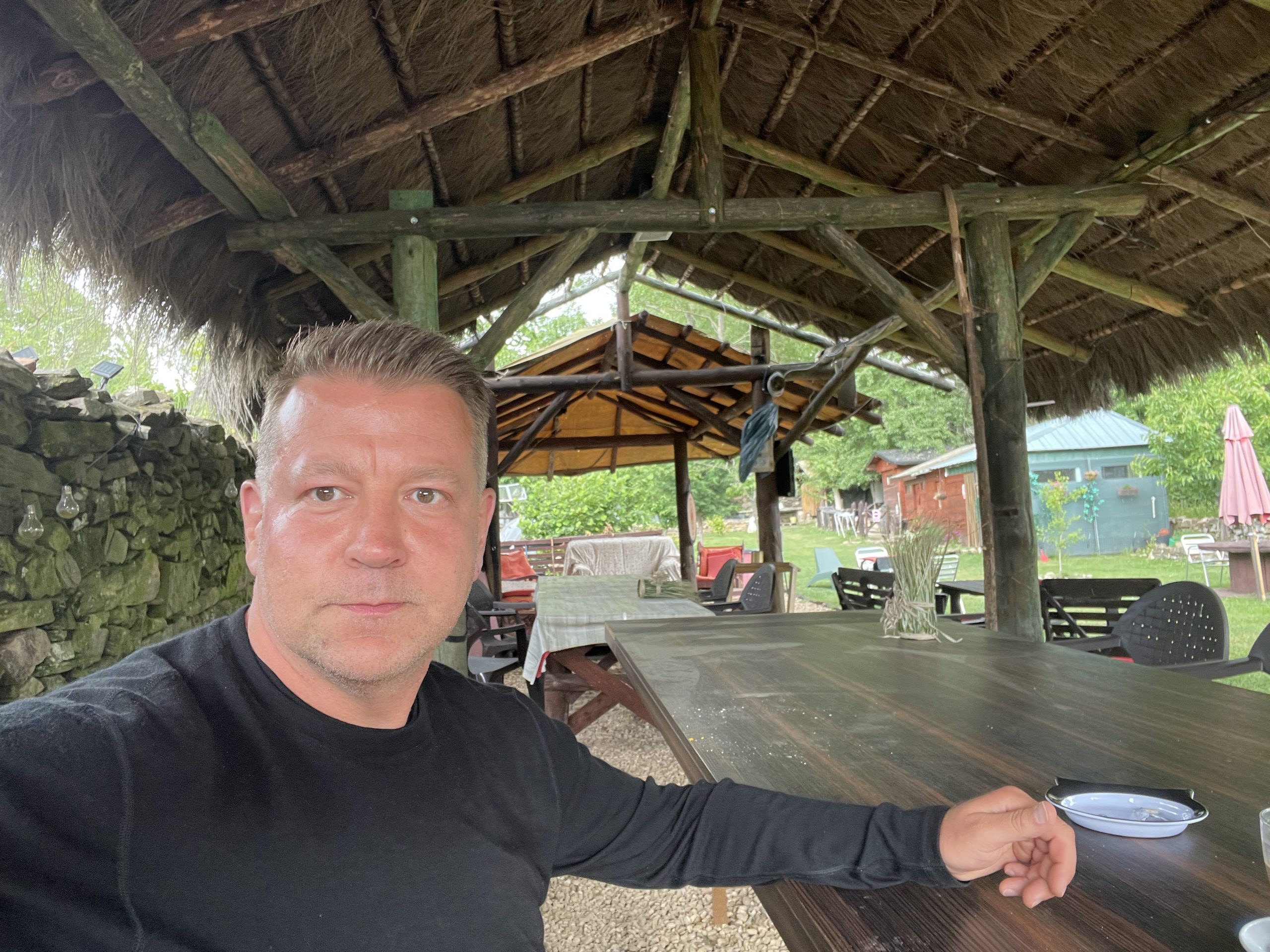 Gestern nach der Kirche lernte ich Christine, oder Chris wie sie sich vorstellte, und ihren Mann Worek kennen. Beide sind natürlich Australier aus Victoria. Wir haben den ganzen Abend zusammen im Green Garden verbracht. Eine von Aussteiger betriebene Bar mit Sitzsofas. Dort gab es auch eine Unmenge von Katzen und Hunden, die die Sofas sichtlich ebenso wertschätzten. So sahen sie dann auch aus. Hab ein Stuhl bevorzugt. Für die beiden ist es schon der zweite Camino nach 20 Jahren. Jetzt sind sie in Rente, lassen es ruhig angehen und laufen nicht mehr als 10 KM Pro Tag. Bin zwar nicht in Rente, hört sich aber gut an. Dann wäre ich in 24 Tagen in Santiago. Der Green Garden hatte auch eine Unterkunft zu bieten. Eine aus Wellblech zusammengezimmerte Bude. Beide wohnen da für einen Tag und haben mir das Innere der Behausung gezeigt. Little Adventure. War ein sehr schöner Abend mit den beiden.
