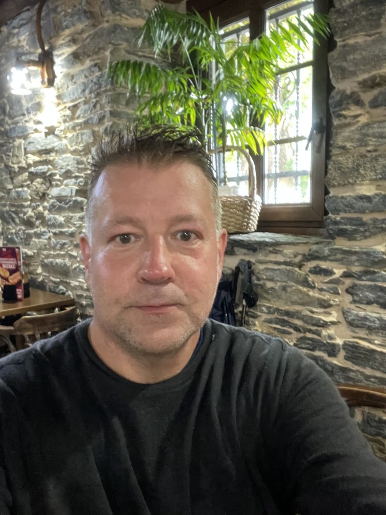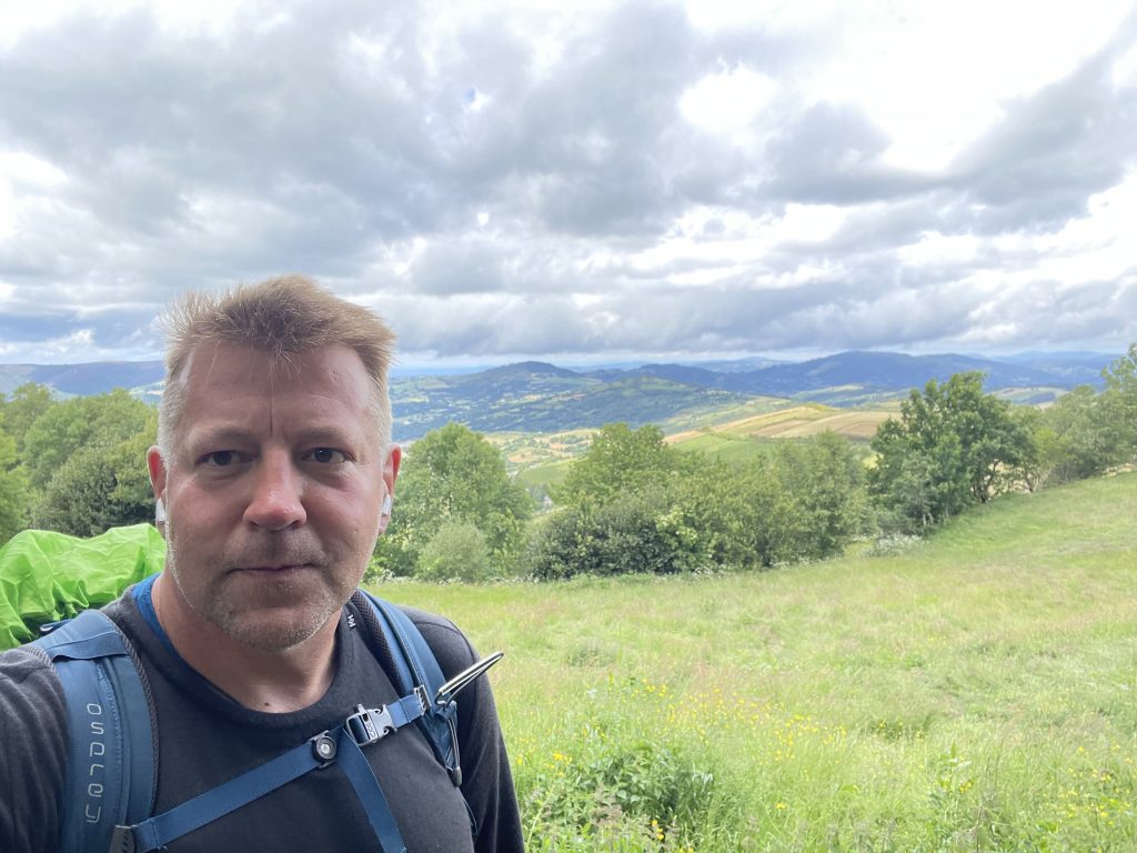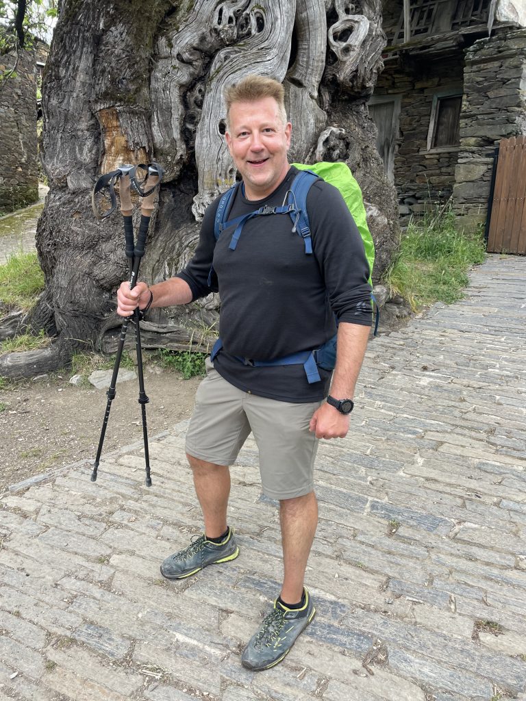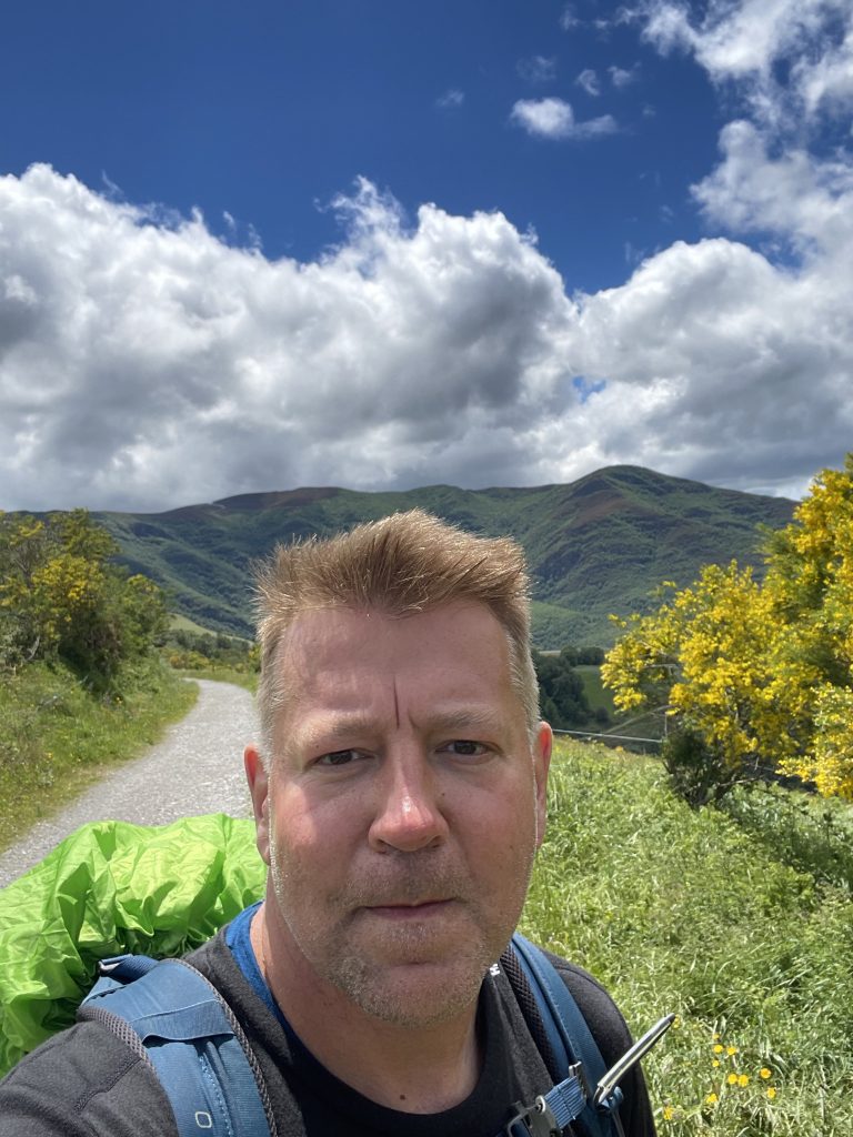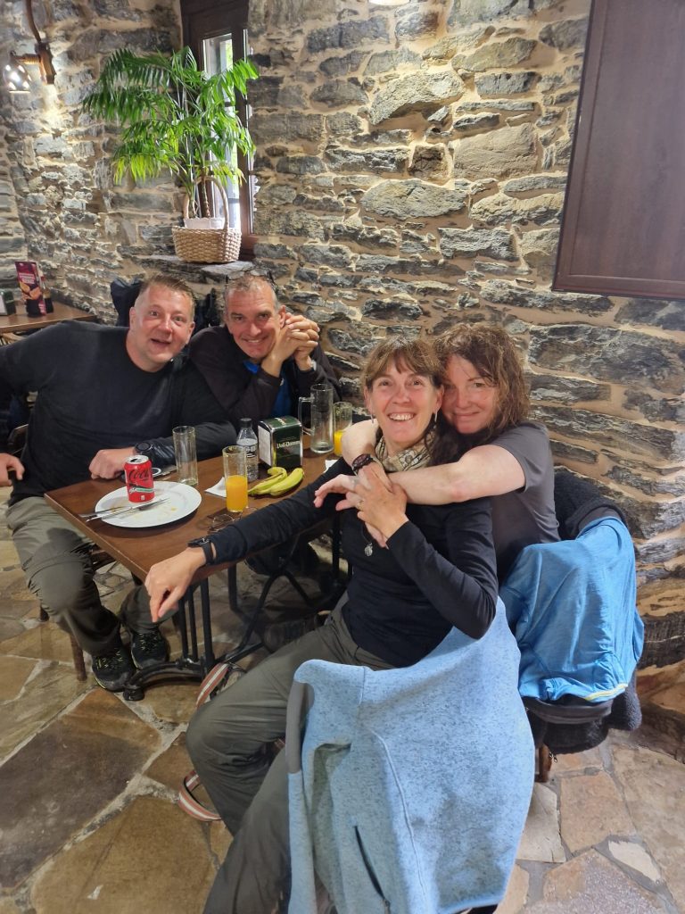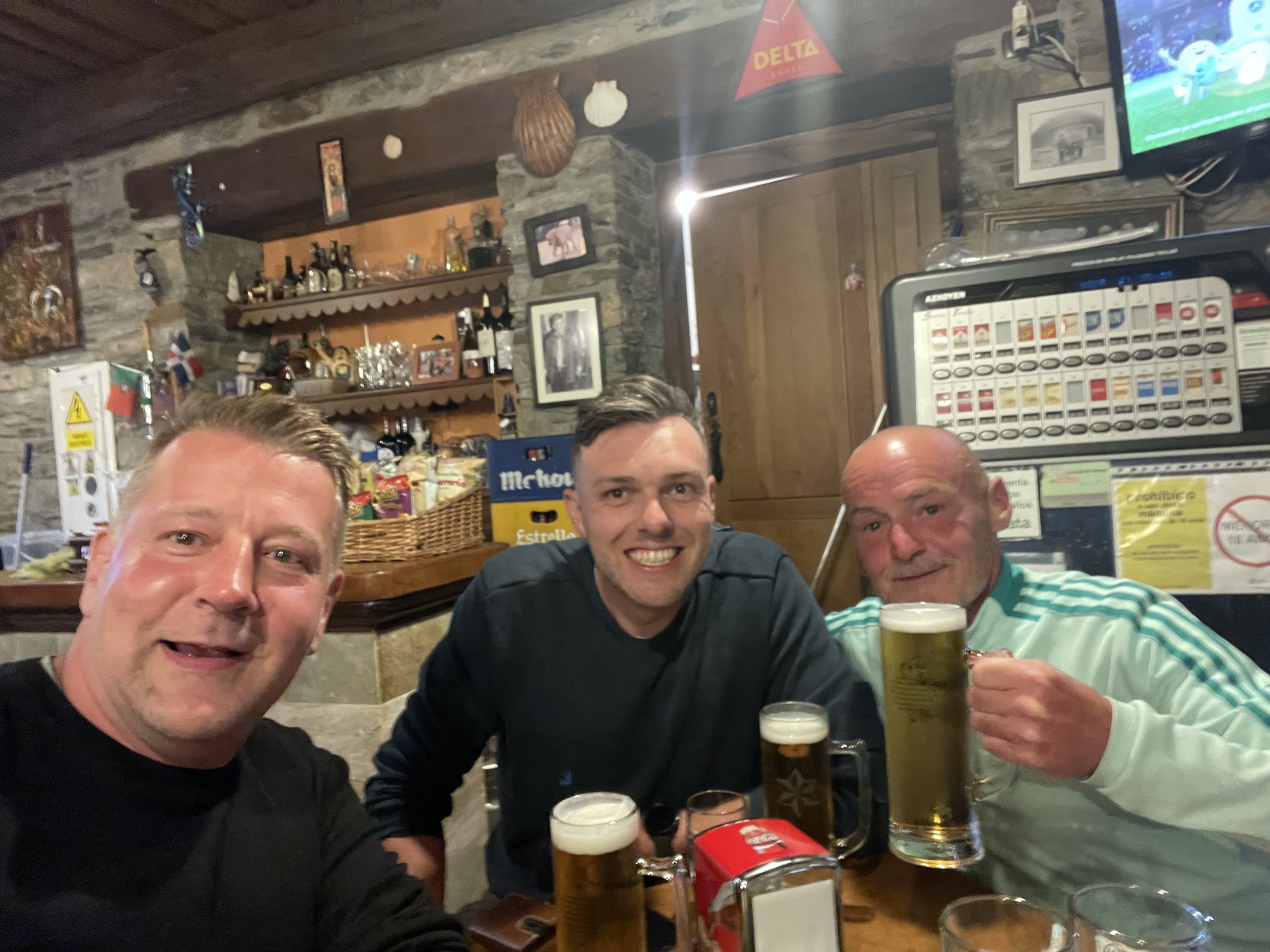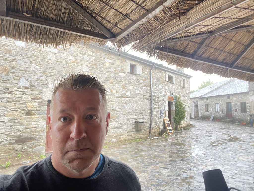 Gestern lernte ich Bart aus Belgien, Terry aus Australien und John aus Irland kennen. Für mich ist er der Inbegriff eines Iren. Keltischer Akzent, trinkfest und man hat das Gefühl, dass er immer für eine kleine, faire Prügelei zu haben ist. Heute Morgen steckte mir die gestrige Königsetappe noch ordentlich in den Knochen. Der Blick aus dem Fenster hat die Vorfreude auf den heutigen Tag auch nicht unbedingt gesteigert. Regen, windig und neblig. Dreh mich nochmal um. Sieht 30 Minuten später auch nicht anders aus. Wiederhole das Spiel noch zweimal. Unverändert. Na gut, steh ich halt auf. Ich hab gestern noch alles gewaschen. War ein Fehler, da die Klamotten bei den Temperaturen nicht trocken wurden. Kalte, nasse Socken anziehen bei nasskaltem, regnerischen Wetter macht irgendwie kein Spaß. Gehe in die gegenüberliegende Bar und trinke erstmal einen heißen Kaffee und hoffe darauf, dass es aufhört zu regenen. Nach dem vierten Kaffee gebe ich die Hoffnung auf und gehe los. Ist mittlerweile auch schon 10.00 Uhr und ich will ja heute noch ankommen. Mein Körper könnte wohl auch mal wieder einen Ruhetag gebrauchen. Vielleicht morgen. Komme heute bei dem Wetter nicht in Tritt, zumal es erstmal wieder steil bergauf geht. Treffe die Saarländer von gestern wieder und es gibt eine heiße, galizische Gemüsesuppe. Die wärmt nicht nur, sondern endlich mal Gemüse. Die spanische Küche ist sehr fleischlastig. Die Ausblicke sind dafür grandios und der Vorteil ist, wenn man so spät startet, dass man den Weg mehr oder weniger für sich allein hat. Die Sonne kam später auch noch raus und so wurde es doch noch ein toller Tag. Auf den letzten 5KM lernte ich David aus Toronto kennen. Er ist ab Leon gestartet und läuft den Camino mit seiner Frau, die heute aber den Bus genommen hat und er somit allein unterwegs ist. Letztes Jahr ist er den Weg mit seiner 18jährigen Tochter gelaufen. Muss mal meine fragen. Die lebhafte und angenehme Unterhaltung hat die Strecke verkürzt. Danke David. Bald beginnt der „Partypart“, die letzten 100 KM. Überfüllte Wege mit spasssuchenden „Pilger“. Genieße erstmal noch den alten Weg und freue mich aufs Spiel, dass ich mit Bart, Terry und dem verrückten Iren schauen werde. Mögen die Spiele im doppelten Sinne beginnen. Wasche aber erstmal noch alle Klamotten, diesmal im Waschsalon mit Trockner. Bin ja lernfähig.
