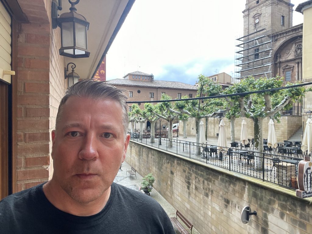 Es ist bewölkt und ab und zu kommt ein Schauer runter, später auch ein heftiges Gewitter. Das ganze bei 17 Grad. Heute führte der Weg wieder zurück nach Los Arcos und dann wieder nach Logrono mit dem Bus. Schließlich dann per pedes in das kleine Weindorf Navarrete.