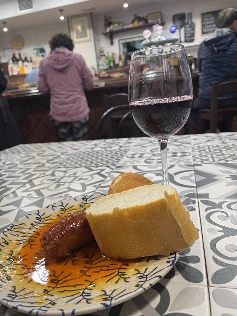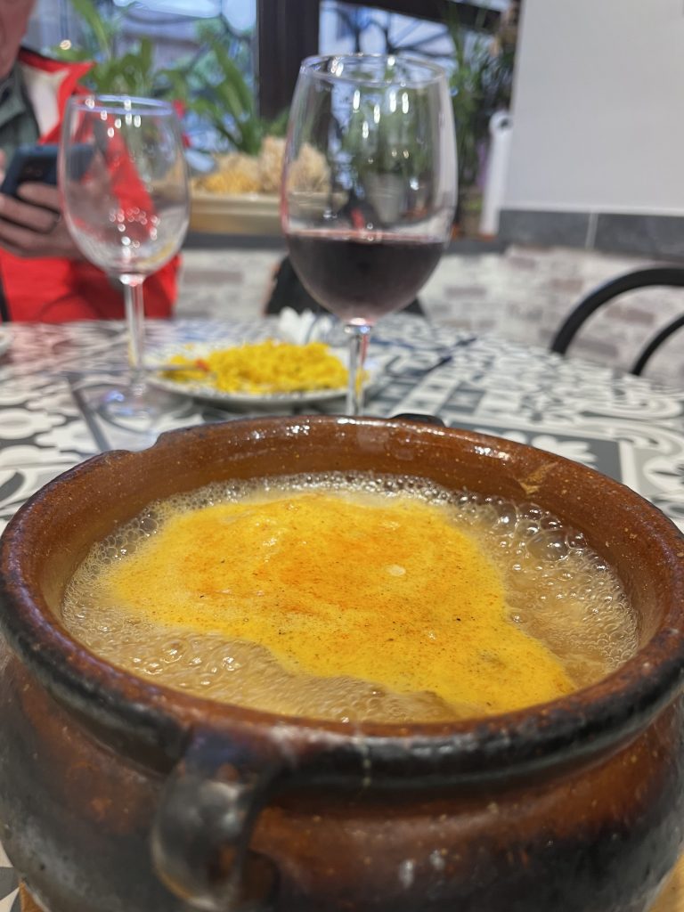 Gestern war das Abschiedsessen. Nils sagte, er kenne einen hervorragendes, arabisches Restaurant um die Ecke. Dies ist schon sein zweiter Camino. Arabisch hört sich gut an, dachte ich. Hätte Lust auf Köfte und Salat. Er führte uns dann zu einem Dönerladen und es gab ein Kepab mit Pommes. Na ja, das kulinarische Verständnis ist halt unterschiedlich😉. Danach gab es einen emotionalen Abschied, da die anderen weiterziehen wollten und ich mir einen Tag Pause gönnen wollte, dachte ich.
