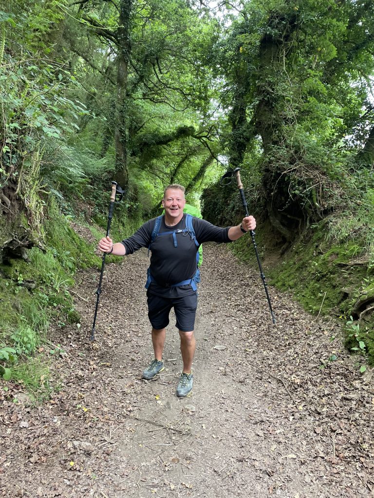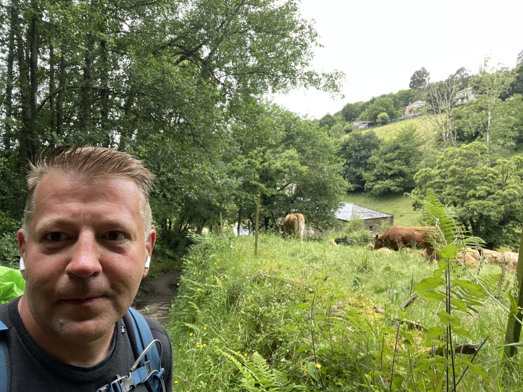 Bei typischem, galizischem Nieselregen geht es heute über 24 KM von Triacastela nach Sarria. Am Ortsausgang weisen mich zwei Schilder daraufhin, dass ich 7Km einsparen könnte, das es eine Alternativroute gibt. Klar, wenn es die dann schon mal gibt, nehme ich sie auch. Sollte allerdings teuer erkauft werden. Der eine Weg führt um den Berg herum und der andere halt geradeaus bzw. steil über den Berg. Galizien strotzt nur so vor grünen Wiesen, moosbewachsene, riesige Eichen und es geht meist entlang einer alten Steinmauer, die vor Urzeiten angelegt wurde. Man hat jederzeit das Gefühl, Miraculix beim Mistelsuchen oder Obelix beim Wildschweinjagen anzutreffen, auch wenn das uneinnehmbare, gallische Dorf geographisch ein wenig östlicher zu verorten ist. Mystische Landschaft.