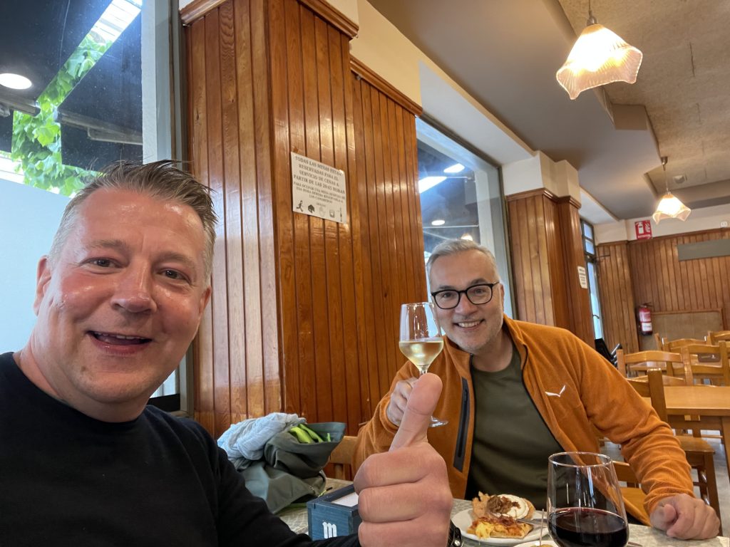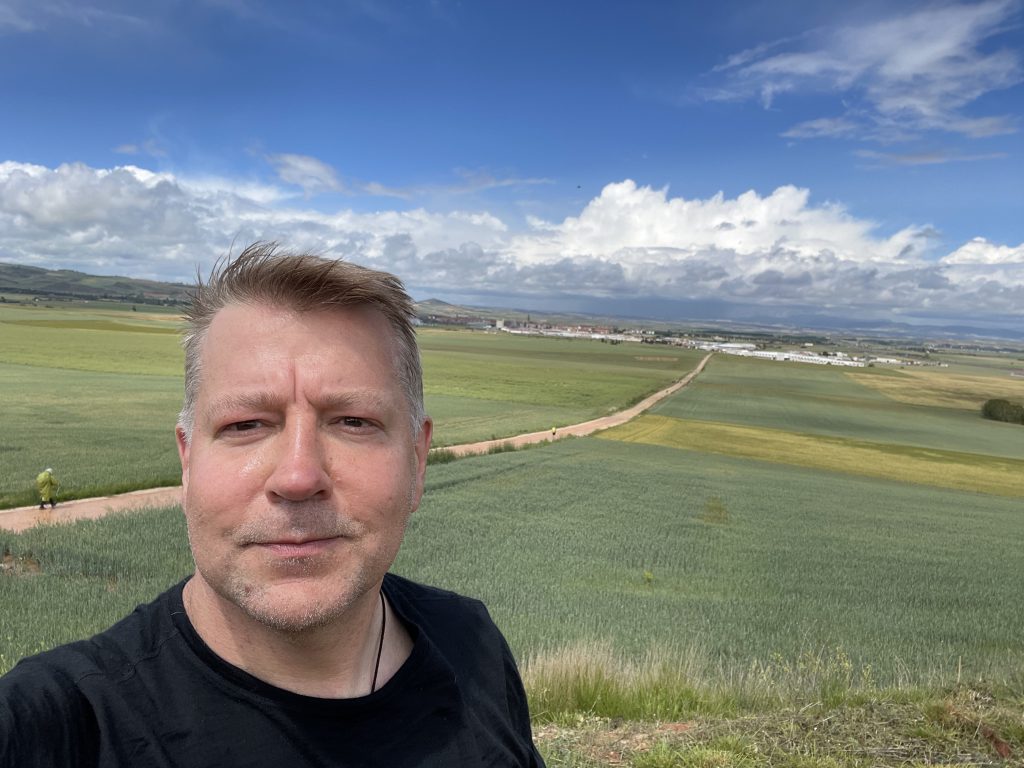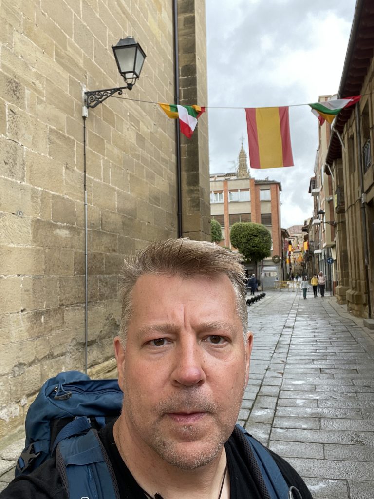 Schlecht geschlafen. Diese Herbergen sind irgendwie nichts für mich, werde mir heute ein Zimmer buchen. Heute morgen um 6.00 Uhr fing der Koreaner an, geräuschvoll seinen Rucksack zu packen. Der hat seine Klamotten nach dem höchsten Raschelfaktor gekauft und so viele Reisverschlüsse, wie der auf und zu zieht, gibt es am Rucksack nicht. Noch 5 Minuten länger und ich stopfe ihn selbst rein, denke ich. Jetzt bin ich schon mal wach und stehe auf. Wie immer ohne Frühstück um 07.15 Uhr los. Die ersten 500m, dann kommt der ersten Anstieg. Hmh, irgendwas fehlt. Mist meinen Stöcker. Also wieder zurück. Tür ist verschlossen. Komme nach heftigen Klopfen nach 5 Minuten rein. Erste Ehrenrunde für heute. Das passiert mir nicht nochmal. Hab ich das nicht schon mal gesagt😂. Wieder am Marktplatz vorbei, dort wärmen sich im Kollektiv 20 Koreaner auf und feuern sich für den bevorstehenden Tag an, um dann ihre Rucksäcke im bereitgestellten Bus zu verfrachten. Die ersten Kilometer laufen ich mit Mareo, einem Brasilianer, der den Weg aus spirituellen Gründen läuft. Erster Stopp nach 8Km. Dort lerne ich Ross aus Florida und Brad aus Tennessee kennen. Er bucht auch nicht vor und ist mir auf Anhieb sympathisch. Vielleicht sehen wir uns wieder. Zwei Café von leche und einem Bocadillo später geht es weiter. Es fängt an zu regnen, meine Schienbeine schmerzen bei jedem Schritt. Ich kann die tolle Landschaft mit endlosen Weizenfeldern und einem kilometerweiten Blick nicht so recht genießen. Kann das heutige Ziel mit meinem eigenen Bett und warmer Dusche nicht erwarten. Die Schmerzen nehmen von Schritt zu Schritt zu und die letzten Kilometer ziehen sich wie Kaugummi. Endlich bin ich da. Erst duschen?Keine Kraft mehr, ich lege mich sofort ins Bett und schlafe sofort ein. Irgendwo zwischen hier und Navarette muss mir meine Anfangseuphorie aus dem Rucksack gefallen sein, hätte sie gern wieder. Ich glaube, ich gebe ne“ Suchanzeige auf:“Anfangseuphorie von Jens gesucht. Besondere Merkmale: motiviert, dynamisch und tatenhungrig. Wer etwas gesehen hat, auf das die Beschreibung passt oder sachdienliche Hinweise machen kann, bitte sofort mit Jens Reich in Verbindung setzen, der vermisst sie ganz stark.“ Aber auch solche Tage gehören dazu und während ich das schreibe, kommt auch wieder langsam die Sonne raus. Und gleich esse ich mit Stefano, dem Italiener von gestern, ein Haufen Tapas. Stefano ist italienischer Diplomat und lebt gerade in Abu Dhabi. Macht Spaß mit ihm. Er hat vorgeschlagen morgen 7Km ins nächste Dorf zu ziehen. „Step by step.“ That sounds good to me😉