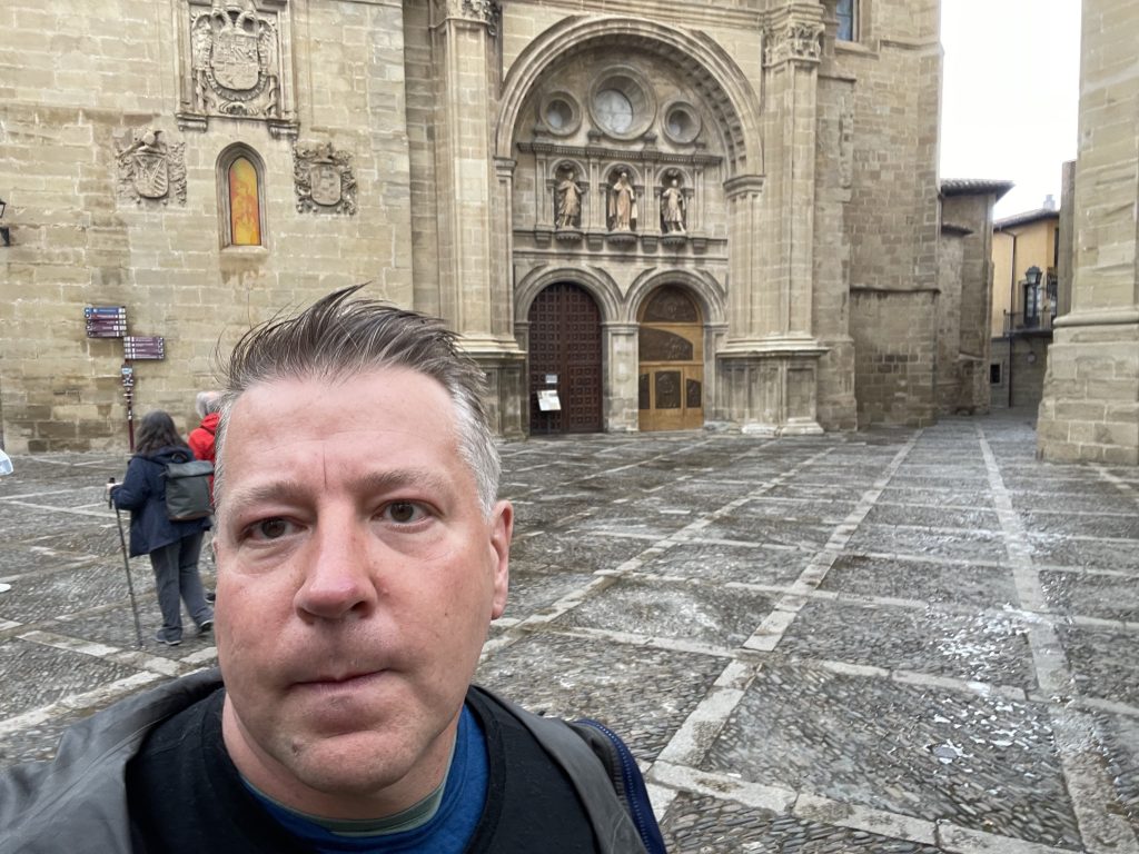 Regen,17 Grad und noch ein Gewitter zum Schluss. Heute ging es über 23 KM von Navarette nach Santa Domingo de la Calzada. Wow, das ist kein Name, das ist ein Statement. In der hiesigen Kirche leben ein Hahn und eine Henne. Die Legende will, dass es Glück für den restlichen Weg bringt, wenn der Hahn kräht, wenn man die Kirche betritt. Ich musste 3x wieder rein und raus bis das Vieh mal ein Ton von sich gab. Ursprung ist eine Geschichte aus dem Mittelalter. Eine deutsche Pilgerfamilie übernachtete in einer Herberge. Am nächsten Tag wurde der Sohn der Pilgerfamilie vom Herbergsvater beschuldigt eine Goldkette gestohlen zu haben. Und da der Beschuldigte seine Unschuld nicht beweisen konnte, wurde er kurzerhand zum Tode verurteilt. Damals war das Rechtssystem halt noch nicht so kompliziert wie heute. Die Eltern des Jungen wurden beim Bischoff vorstellig, um für den Jungen um Gnade zu bitten. Der Bischoff saß gerade vor seinem Abendmahl, einem gebratene Hühnchen. Er sprach:“ Euer Sohn ist so schuldig, wie dieses Huhn tot ist.“ In diesem Augenblick flog das Hühnchen davon und die Legende war geboren. Die wussten damals schon, wie Marketing funktioniert.