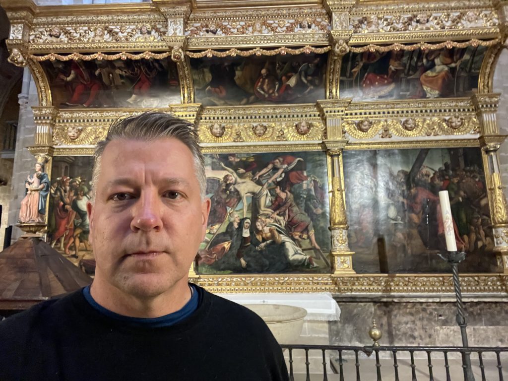 Ich verbringe einen weiteren Tag in regnerischen Santo Domingo de la Calzone. So habe ich in Ruhe Zeit mir die Kirche und die wundervollen Gemälde und Skulpturen anzuschauen und natürlich das Aufstiegsspiel. Preussen Münster!!!