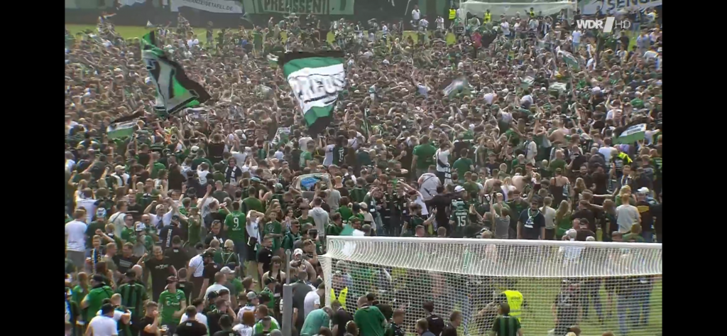 Es war ein toller Abend mit Stefano. Als italienischer Diplomat in vielen Ländern konnte er viele interessante Geschichten berichten. Ich hätte mich gern mit ihm heute wiedergetroffen. Leider bin ich heute Morgen um 04.00 aufgewacht. Die Schmerzen im Schienbein haben mich geweckt. Die Wade war hart wie Stein und hat wohl zu einer Reizung oder Entzündung am Schienbein geführt. Ich bin die letzten Etappen zu schnell gelaufen, muss endlich lernen zu entschleunigen. Also heute besser pausieren. Ich hänge noch einen Tag in Santo Domingo dran. Konnte das gleiche Hostel buchen, nur nicht das gleiche Zimmer, warum auch immer. Also um 9.09 Uhr raus, Tapas zum Frühstück und 3x Café von leche und um 12.00 Uhr wieder rein. Davor noch in die Pharmacia. Ich habe im Google Übersetzer eingegeben: „Salbe gegen Schmerzen im Schienbein“—>“Ungüento para el dolor de espinilla“. Klingt ja auch viel besser. Die Apothekerin hatte erst ein Stirnrunzeln, geht dann aber zielsicher zu einem Regal und drückt mir mit einem überzeugenden Lächeln eine Packung in die Hand. Wow, EUR 30. Na, wenn die nicht wirkt, weiß ich auch nicht. Wieder im Hotel tippe ich erwartungsvoll die Beschreibung auf der Packung in meinen Google Übersetzer:“ Salbe gegen Hautspannungen.“ Na, schönen Dank. Hab“s trotzdem draufgeschmiert. Man muss nur fest dran glauben, dann hilft es schon. Danach noch versucht die Wade wieder zu lockern. Gut, dass ich die Faszienrolle mit habe…Auaaa! Danach konnte ich mir mit Tränen in den Augen das grandiose Aufstiegsspiel anschauen. Tränen aufgrund des Aufstiegs oder der Massage sag“ ich jetzt nicht. Ist auch egal, 2. Liga!!! Nächstes Saison gegen Hamburg. Muss ich wohl erstmalig in den Gästeblock.