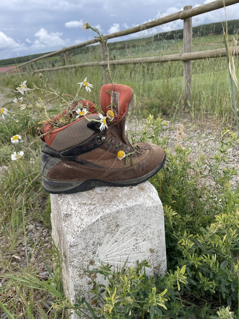 Trotz ein wenig Aua, ist es ein toller Tag und die Stimmung ist gut. Heute Morgen bin ich zum ersten Mal von meinem Wecker geweckt worden und nicht von hektisch mit ihren Klamotten raschelnde Bettflüchtige. Bin nach ausgiebigen Dehnen und Einheiten mit der Faszienrolle um 9.00 Uhr gestartet, erst noch zur Pharmacia, um mit entzündungshemmende Tabletten zu holen. Die hatte noch nicht auf. Okay, heutige Ehrenrunde für heute, obwohl ich diesmal nichts vergessen hatte. Vielen Dank an die heimische. medizinische Betreuung für die vielen Tipps. Ich nahm mir die Ratschläge zu Herzen und bin sehr, sehr langsam losgelaufen. Und nach einigen Kilometern spürte ich wie im Gleichschritt neben der physischen Entschleunigung auch eine mentale Entschleunigung einsetzte. Obwohl ich es mir fest vorgenommen hatte, „Der Weg ist das Ziel“, „Nimm dir Zeit“, „Genieß es“, habe ich es nicht bis zu meinen Inneren vordringen lassen. Erst heute habe ich gemerkt, was es bedeutet und wie es sich anfühlt. Die Welt drehte sich ein wenig langsamer. Kein Start-Ziel Sieg, nicht höher, schneller und weiter, wo ist die nächste Aufgabe. Sondern einfach nur genießen und geschehen lassen. Unbeschreibliches Gefühl. Und als ich so meinen Gedanken hinterherhänge, schaue ich auf und erblicke genau in diesem Moment diesen Wegweiser mit dem Spruch:“ Let it happen“. Ich glaub“ ja nicht an sowas, aber das war schon komisch. Heute bin ich in einem 4er Zimmer in einer wundervollen Herberge in einem alten Fachwerkhaus mitten auf dem Land. Super ruhig hier. Herrlich. Hier stimmt einfach alles, über die freundliche Begrüßung bis zum stilvollen Ambiente und das heutige Pilgermenü sah auch gut aus. Serviert wird erst um 19.00 Uhr, hab Hunger, hatte heute nur ein kleines Omelett nach 6 Km heute morgen und hier ist kein Supermarkt. Die zwei Koreaner neben an am Tisch waren schlauer und schaufeln ihr mitgebrachtes Essen lautstark in sich rein und schauen dabei noch lautstärker irgendwelche K-Pop Videos. Nicht, dass ich falsch verstanden werden, ich will nicht urteilen, ist halt nur anders😉. Abgesehen von den Schmerzen im Schienbein war es ein toller Tag. Der Drecksack und ich sind uns ein wenig näher gekommen. Er hat gefühlt abgenommen, so wie ich. Kann den Bauchgurt nun auf den Bauch und nicht darunter tragen😂Mal sehen wie der Abend verläuft. Gerade kommen noch Ross aus Seattle und ein Kanadier ins Zimmer, der bereits von Toulouse losgelaufen ist. Hab den Namen vergessen. Freue mich auf die nächsten Tage. Ich habe mir Etappen bis Max 13 Km rausgesucht bevor ich dann Freitag in Burgos ankommen. Eine wunderschöne, größere Stadt mit vielen Sehenswürdigkeiten. Dort gönne ich mir 3 Tage Auszeit und eine kleine Ferienwohnung mitten im Zentrum der Stadt.