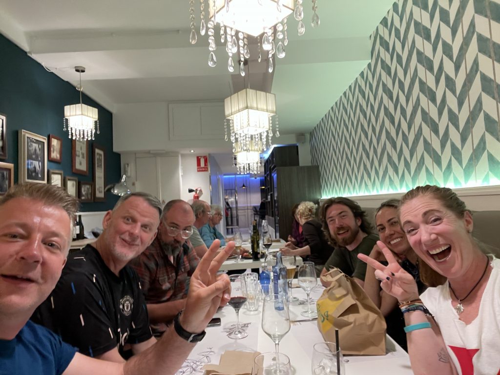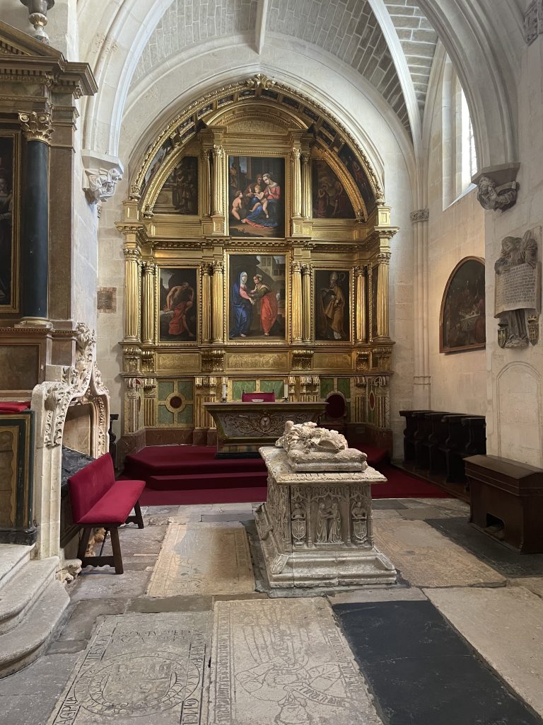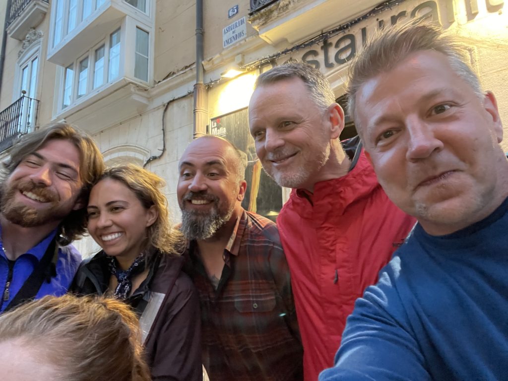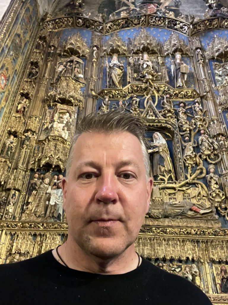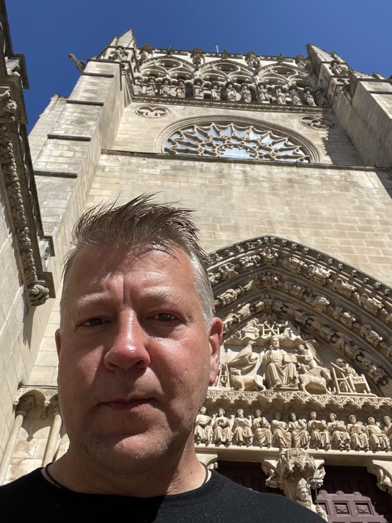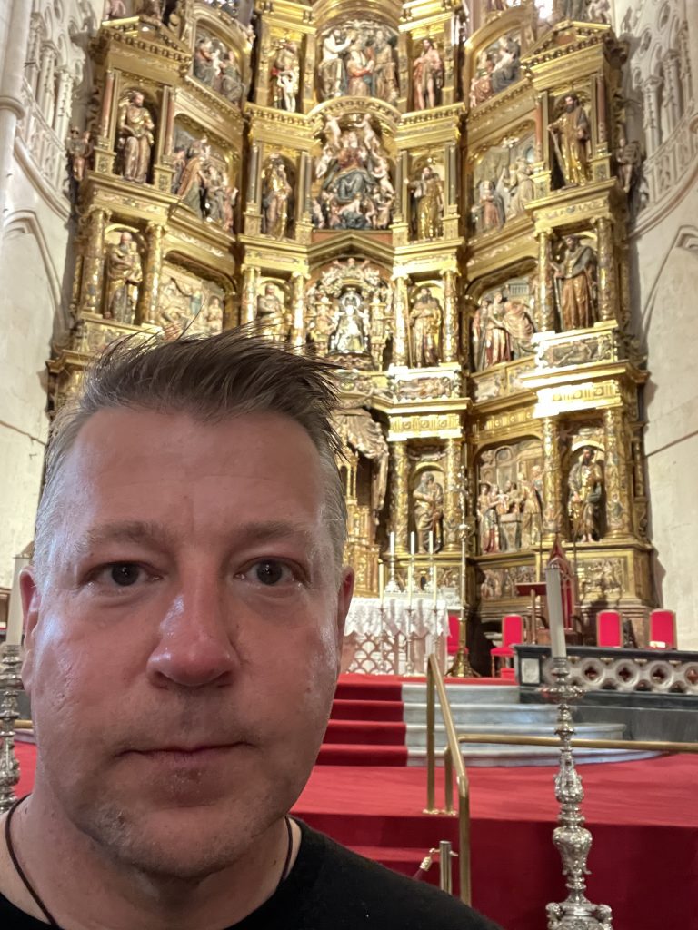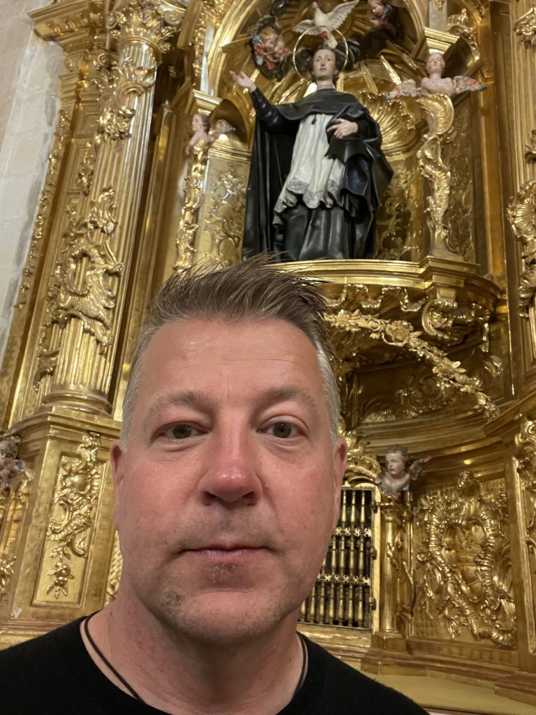 Fühle mich rundum zufrieden. Ich lag heute so lange im Bett bis ich nicht mehr liegen konnte. Das Appartement ist toll, zentral, modern mit eigener Waschmaschine und Küche und mit allem ausgestattet, was man braucht. Hätte ich theoretisch auch alles benutzen können, wäre ich gestern noch in den Supermarkt gegangen. Hole ich heute nach. Zuerst schaue ich mir jedoch die Kathedrale von innen an, bevor nachmittags der Pilgeransturm beginnt. 30 Minuten später und 10 EUR ärmer stand ich im imposanten Kircheninneren. Da weiß man, wo der Reichtum aus den Kolonien investiert wurde. Und wenn es mich schon beeindruckt, was muss der gemeine Pilger vor ein paar hundert Jahren gedacht haben. Bin mir aber sicher, dass der kein Eintritt zahlen musste. Und während ich noch im Staunen bin, spricht mich Stefan von gestern an, der, wie kann es anders sein, die Kirche zur gleichen Zeit besichtigt wie ich. Er fragt nochmal nach dem Schienbein und wir verabschieden uns, da er heute mit dem Bus nach Hause fährt. „Take care of you“, ruft er mit hinterher. Werde ich machen, denke ich und setze es gleich in die Tat um. Ich suche mir ein gemütliches Café und frühstücke erstmal einen Bocadillo mit Thunfisch. Nebenan setzt sich eine Pilgerin. „Buen Camino“, sage ich und wir reden erstmal 15 Minuten in Englisch miteinander bevor ich sie frage, woher sie kommt. „Switzerland“, sagt sie. Okay, hätten wir auch einfacher haben können. Andrea heißt sie und ist wie ich in Saint Jean gestartet und ihr Ziel ist ebenso Santiago. Dies trifft für die meisten Pilger zu. Die wenigsten kommen laut Statistik jedoch auch an. Frage mich gerade, zu welcher Gruppe ich am Ende gehören werde. Ich sitze noch ca. 1 Stunde mit ihr zusammen und wir unterhalten uns angenehm bevor ich mich zum Supermarkt aufmache und nach dieser Anstrengung erstmal Siesta halte. Will mich schliesslich ausruhen. Heute Abend war die amerikanische Runde. M-jay aus Boston, Monique aus Kalifornien, Ludger aus Florida und Matheo aus Orlando. Wir haben gemeinsam den Abend verbracht. Nicht so einfach denen zu folgen, wenn die unter sich sprechen. Noch nie so viel „fuckings“ auf einmal gehört. Muss wohl grammatikalisch irgendwie dazu gehören. Der Trinkspruch für heute lautet:“Live the fucking moment“. Dann werde ich das jetzt mal tun. Gute Nacht