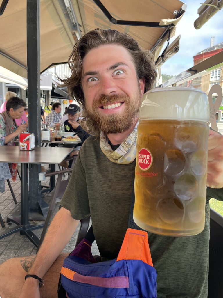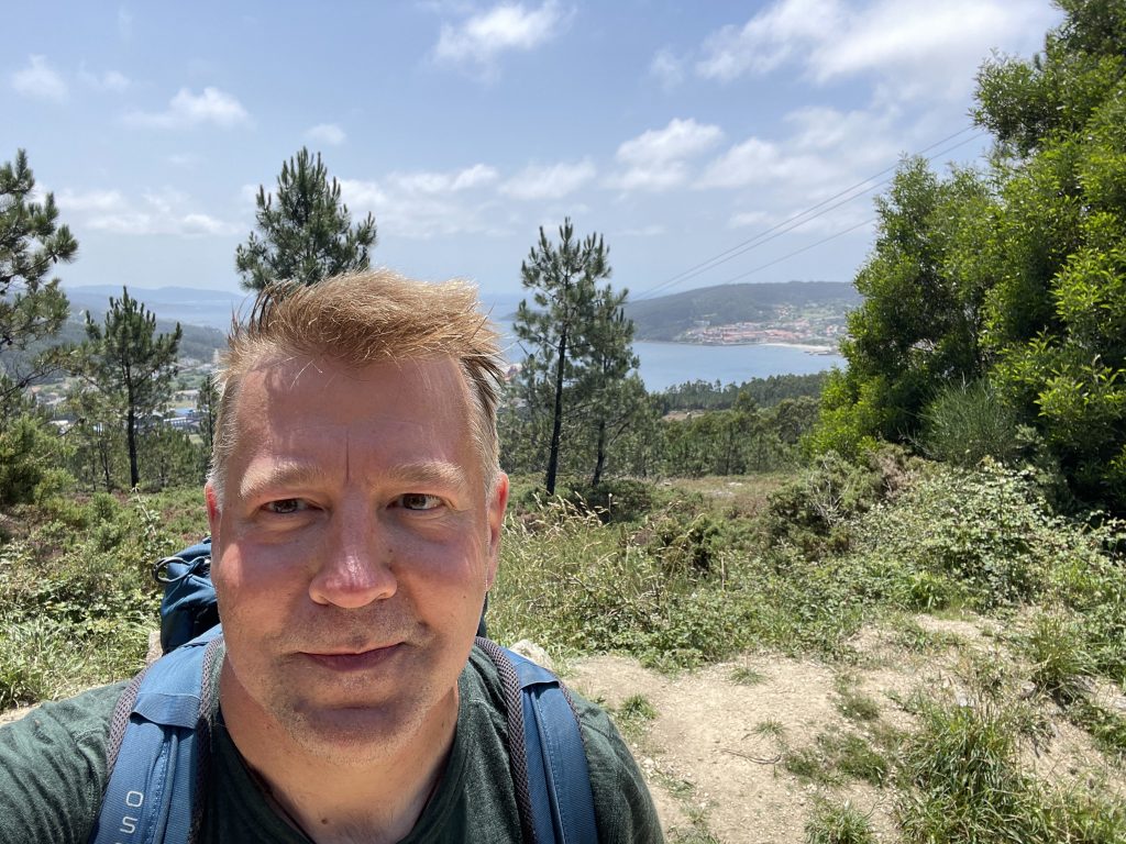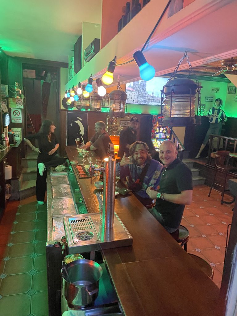 Die Herberge war super, die Matratze jedoch durchgelegen und ich lag auf dem Matratzenrost und bin ständig aufgewacht. Ab jetzt keine Herberge mehr. Das Wandern macht mir grad auch nur begrenzt Freude. Freue mich aber auf“s Meer. Zählen die verbleibenden Kilometer und dann nach einer Kurve sehen wir zum ersten Mal das Meer. Wow! Einmal Spanien von links nach rechts durchquert. Tolles Gefühl. Tana und ich haben uns zu Feier des Tages ein Doppelzimmer in einer Herberge gebucht. Kurz geduscht, und obwohl wir noch einen Tag vor uns haben, feiern wir heute schon und suchen uns dafür einen coole Bar, die auch auf St. Pauli hätte stehen können. Dort lernen wir Suso, den Barkeeper, Jana, seine Ex und Juso kennen, der uns ständig einen ausgeben will. Ich halte ihn nicht auf. Irgendwann müssen wir auch den letzten beide Tagen Tribut zollen und gehen ins Bett. Diesmal kann ich gut schlafen.