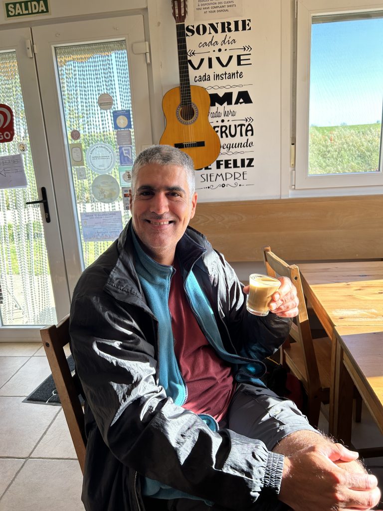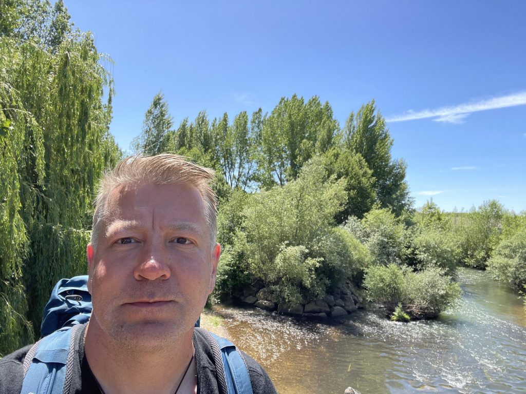 Gestern war ich nach der Höllenetappe völlig fertig. Noch gemeinsam mit Jennifer, Charlotte, Raul und Matheo in der Herberge was gegessen. Wir hatten zufällig alle die gleiche Herberge gebucht. Obwohl das auch nicht schwer war, es gab nur zwei. Matheo ist Amerikaner, ich kannte ihn schon aus Burgos. Er ist Fussballfan, ungewöhnlich für einen Amerikaner. Danach fährt er nach Deutschland, um sich zwei Spiele anzuschauen, noch ungewöhnlicher. Dann bin ich totmüde um 21.30 Uhr ins Bett. Ich hatte ein tolles Zimmer für mich, ein tolles Bett und einen erholsamen Schlaf. Die Stimmung war grandios, emotional und intensiv heute. Ausgeschlafen, fit und gutgelaunt bin ich um 7.15 Uhr gestartet. Ich liebe den Moment zwischen Nacht und Tag an einem frühen Sommertag, wenn es auf der einen Seite noch kühl ist, und die Kälte langsam von den ersten Sonnenstrahlen verdrängt wird. Alles ist noch still und der Tag liegt vor dir. Ein leichter Wind streifte durch die Äste der Bäume, die ersten Sonnenstrahlen auf der Haut vertrieb die Kälte und ich fühlte mich in unbeschwerte frühe Jugendjahre zurückversetzt. Dachte an die Zeit an der Ostsee im Sommer. Man liegt am Strand, 6 Wochen Schulferien vor dir, in dem Alter muss man sich um nichts kümmern, die Welt liegt vor einem und man lebt sorgenfrei in den Tag. Macht sich maximal Gedanken darüber, wie man die Mädels 5 Meter weiter am besten anspricht. Ansonsten gibt es keine Verpflichtungen, man ist zufrieden, wie es grad ist. Schönes Gefühl. Dann kamen mir plötzlich meine verstorbenen Eltern in den Sinn, die das für uns ermöglicht haben. Und ich weiß nicht warum, aber das Gefühl kam völlig überraschend, unvermittelt und intensiv. Ich hatte Tränen in den Augen. Die, die mich kennen, wissen, dass ich alles andere als nahe am Wasser gebaut bin. Es hat mich plötzlich einfach überwältigt. Ist schon komisch, was der Weg mit einem macht. Hatte es auch gelesen, irgendwann trifft es jeden auf dem Weg. Hatte ich zwar nicht geglaubt, ist jetzt aber so. Dreimal tief durchatmen. Das Gefühl der Traurigkeit ist dann ein Gefühl der Dankbarkeit gewichen. Dankbar, dass ich so ein Gefühl anscheinend mit meinen Eltern verknüpfe, die es trotz der sicher nicht einfachen Umstände seiner Zeit ermöglicht haben, dass ich dieses sorgenfreie Gefühl überhaupt erleben durfte. Ich bin dann mit einem sehr zufriedenen Lächeln auf dem Gesicht, eigentlich war es schon ein ausgewachsenes Lachen, weiter gewandert. Dabei verspürte ich eine Mischung aus Dankbarkeit und diesem sorgenfreien, unbeschwerten Gefühl aus den Jugendjahren, wenn die Welt noch vor einem liegt. Grandioses Gefühl, dass ich gern konservieren möchte, um es bei Bedarf einfach rauszuholen. Irgendwie schoss mir dabei das Lied von ABBA in den Kopf: Thank you for the music“. Weiß auch nicht warum, wahrscheinlich, weil es dann einzige ist, dass ich kenne und irgendeine Dankbarkeit ausdrückt. Ist auch egal, passt finde ich grad ganz gut zu meiner Stimmung und ich sollte es den Rest des Weges vor mir her summen. Der Weg verging wie im Flug. Keine Probleme heute. Später sollte ich noch Simon treffen, dem ich von meiner Stimmung auf dem Weg berichte. Sein Vater ist mit 95 Jahren im Januar verstorben. Er fragte mich, ob ich Kinder hätte. „Yes, a wonderful daughter, 17 years old“, antwortete ich „Me too, challenging age, but if things don’t go well, she knows that I will always love her“, sagte er.„I also said that to my daughter, probably not often enough“, sagte ich. Wer weiß, vielleicht liest sie ja mit😉